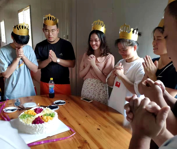 到下午3點,大家戀戀不舍地上岸返回景區(qū)休整地,團隊漂流結束,一個個沖洗整理好,進入休息區(qū)。迎著生日歌緩緩而來的是插滿蠟燭的蛋糕,公司為上半年生日的員工準備了生日蛋糕,大家一起唱了生日歌,切蛋糕,員工們感謝公司的精心安排,感受到了大家庭的溫暖。