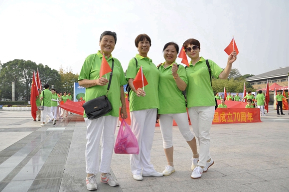 金色的晨曦中,鮮艷的五星紅旗迎風(fēng)招展,紅旗的映襯下,身為中華兒女的麗汽人笑容綻放、步伐矯健,《我和我的祖國》那熟悉的旋律在防洪堤的上空久久回蕩……