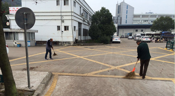 學(xué)校場(chǎng)地綠化極好,然而秋冬季節(jié)的落葉也是紛紛揚(yáng)揚(yáng)。大家早已形成一個(gè)默契,每周一都會(huì)早早的來到學(xué)校清掃我們的“家園”。沒有排值班表,沒有相互督促,每個(gè)周一的早晨,這就是我們的第一件工作!
