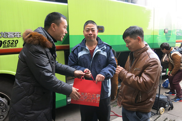 旅游集散中心領(lǐng)導(dǎo)走到每一位參與春運(yùn)加班和民工返鄉(xiāng)包車的駕駛員身邊,送上慰問(wèn)品,并叮囑駕駛員路途注意安全,在駕車時(shí)必須控制好車速,特別是在駛經(jīng)彎道、坡路、橋梁、窄路和視線不良、交通流量大的路段或遇到下雨、下雪、大霧等惡劣天氣時(shí),更要按照限速規(guī)定嚴(yán)格控制車速,避免發(fā)生交通事故;并做好保暖工作,搭班駕駛員互相照應(yīng),不能疲勞駕駛,注意自身健康。