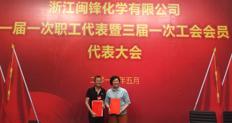 5月2日下午,麗汽集團(tuán)工會與浙江閩鋒化學(xué)有限公司工會“友好共建協(xié)議”簽訂儀式在閩鋒化學(xué)有限公司職代會上隆重舉行,閩鋒化學(xué)有限公司一百余名職工代表共同見證了簽約儀式。