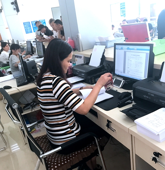 綜合業(yè)務部是安檢站車輛檢測流程開始和結(jié)束的關(guān)口部門,部門的9名員工中有8位是女同胞,擔負著安檢站所有直接面向客戶的服務。從檢測業(yè)務預約、受理到檢測收費、檢測審核出單,甚至新車燃料消耗量核查、檢測信息的上傳及行駛證合格標志的打印,無一不經(jīng)過她們之手。每天上班,她們是第一個開始工作的崗位,每天下班,她們要堅守到最后一筆業(yè)務完成。雖然來自不同的地方,但緣分讓她們齊聚在安檢站這個工作舞臺上,共同演繹了一段段敬業(yè)奉獻的感人故事。