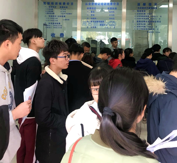 3月3日,高校開學首日,前來報名的人數(shù)就達到了80人。面對高校學生爭相報名的火熱場面,汽校馬上啟動預案,聯(lián)系大巴車負責兩高校報名學生的集中接送。所有工作人員也放棄午休時間,加班加點為學員們辦理報名手續(xù)。學校為確保學生報名注冊工作順利進行,還安排專人對每一個報名學員進行全程陪同。報名服務(wù)中心的工作人員從8點上班一直忙到傍晚18:30才完成當天的報名注冊工作。