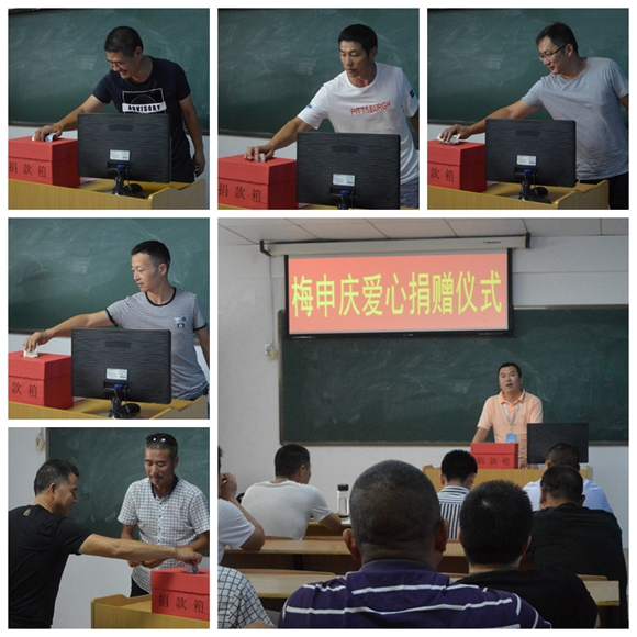 6月29日下午3時,愛心捐款儀式在汽校教室舉行。校領(lǐng)導帶頭捐款,汽校教練員工也積極參加,大家都踴躍地為梅申慶向上了自己的一份愛心,還有兩位學員還專門托教練捎來了捐款。短短幾分鐘內(nèi),就為梅申慶募捐到愛心款 3055元。汽校的金健飛校長更是在第一時間將這份汽校家人的關(guān)愛送到了在醫(yī)院接受化療的梅申慶手中。