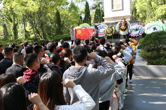“青山綠水長留生前浩氣,蒼松翠柏堪慰逝后英靈”。我們今天的幸福生活是革命烈士們浴血奮戰(zhàn)換來的。為了更好地學(xué)習(xí)他們的思想、繼承他們的遺志、發(fā)揚(yáng)他們的精神,集團(tuán)公司黨委書記葉茂帶領(lǐng)全體黨員重溫了入黨誓詞,團(tuán)委書記陳躍飛也帶領(lǐng)全體團(tuán)員在烈士碑前重溫了入團(tuán)誓詞。