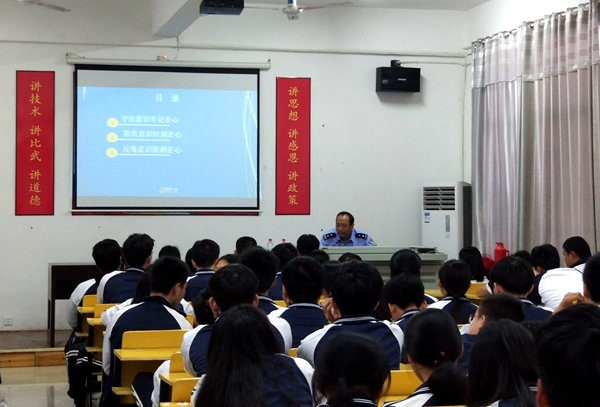 9月24日下午,學(xué)校特邀請(qǐng)蓮都區(qū)公安分局白云派出所民警曹起和對(duì)師生進(jìn)行以《遵紀(jì)守法?共筑和諧校園》為主題的法制宣傳講座。講座主要圍繞四大主題展開(kāi):守法意識(shí)牢記在心、防范意識(shí)時(shí)刻在心、反毒意識(shí)銘刻在心、反邪教意識(shí)警惕在心。