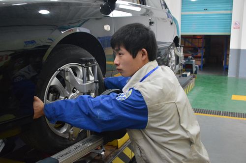 早上8:30分,準時開賽,選手們個個精神抖擻上陣,準備一展身手。只見他們熟練展開四輪輪胎磨損情況、四輪動平衡及鋼圈輪胎變形情況檢查等一系列操作。臺上選手們比技能,臺下其他修理工饒有興致地觀摩學(xué)習(xí)。