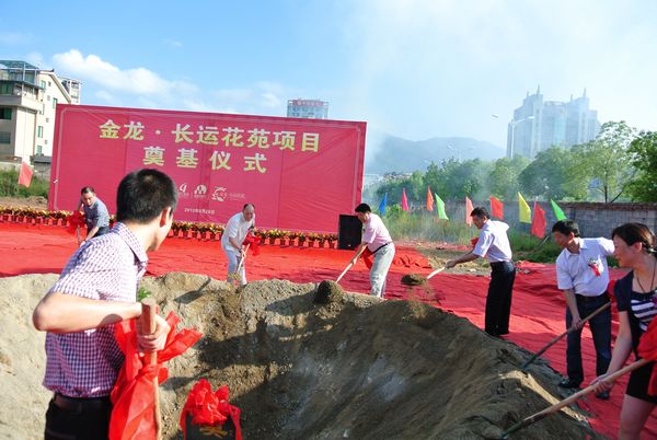 2012年8月26日上午,金龍.長運花苑商住房項目舉行隆重開工奠基儀式。儀式現(xiàn)場,地毯披紅,人潮涌動,彩旗飄飄,音樂雄壯激昂,高空氣球和氣拱門更是增添了會場的熱烈。