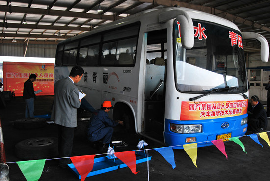 11月13日上午9點(diǎn)整,汽車維修技術(shù)比賽在快客分公司修理車間舉行,快客分公司修理車間和客長(zhǎng)運(yùn)分公司修理車間各派出4名選手,選手根據(jù)抽簽,完成前橋、后橋作業(yè)??炜头止纠罱ú?、客長(zhǎng)運(yùn)分公司武賢強(qiáng)、快客分公司管巧全分獲前三名。