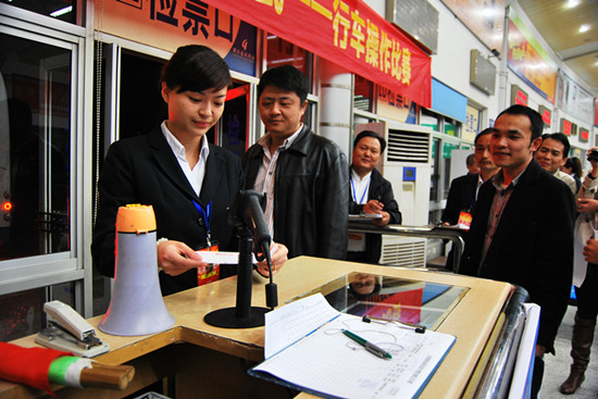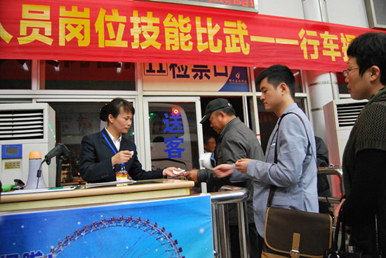 站售操作比賽11月14日晚,在旅游集散中心舉行??瓦\(yùn)東站、客運(yùn)西站分別派出4名選手參賽。經(jīng)過(guò)角逐,客運(yùn)西站封慧麗、客運(yùn)東站魏麗、客運(yùn)西站林莉分獲前3名。