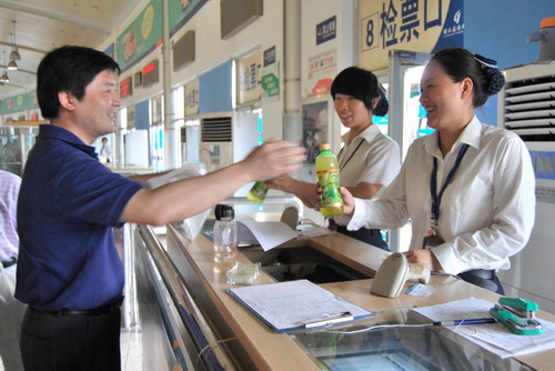 為做好夏季防暑降溫工作,今年集團公司除發(fā)放清涼飲料費外、還在給全體在崗員工每人發(fā)放了五豐冷食冷飲票。在做好員工的防暑降溫工作的同時,集團公司客運東、西站候車廳所有空調(diào)全部啟用,客運東站還打開吊扇,確保室內(nèi)空氣的流通,為旅客營造了舒適、清涼的候車環(huán)境,"流動之家"服務班還在原來送茶水的基礎(chǔ)上,增添了送涼茶(金銀花茶)服務項目,受到旅客的好評。