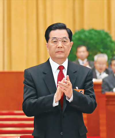 習(xí)近平表示,胡錦濤同志擔(dān)任國家主席10年間,以豐富的政治智慧、高超的領(lǐng)導(dǎo)才能、勤勉的工作精神,為堅(jiān)持和發(fā)展中國特色社會(huì)主義建立了卓越的功勛,贏得了全國各族人民衷心愛戴和國際社會(huì)普遍贊譽(yù)。在習(xí)近平的提議下,全場以熱烈掌聲,向胡錦濤表示衷心的感謝和崇高的敬意。