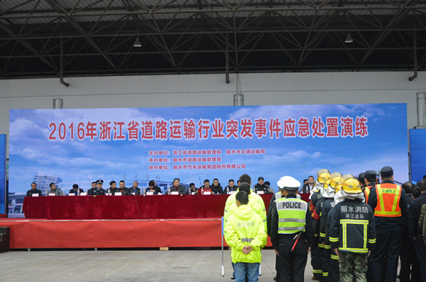 11月24日,由浙江省道路運輸管理局、麗水市交通運輸局主辦,麗水市道路運輸管理局承辦,麗水市汽車運輸集團股份有限公司協(xié)辦的2016年浙江省道路運輸行業(yè)突發(fā)事件應(yīng)急處置演練在麗水客運西站舉行。