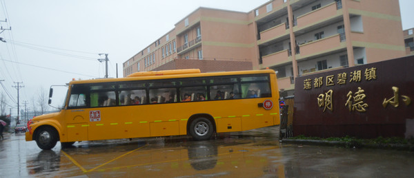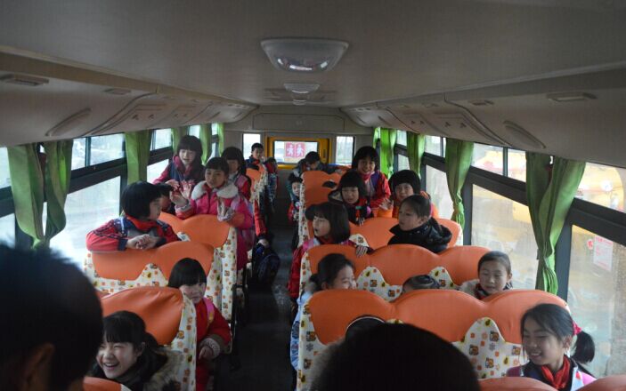 儀式結束后,部分學生坐上新校車,進行了一次體驗之旅。學生雷晨波說:“我以前上學都是坐電瓶車的,遇到下雨天衣服都會淋濕,還很冷,現(xiàn)在可以坐新校車了,以后,衣服不會被淋濕了,也不會冷了。”