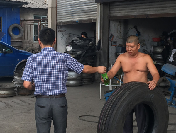 王斌副經(jīng)理為車間的修理工送上清涼,修理工接過后連說:“謝謝領(lǐng)導(dǎo)關(guān)心。”