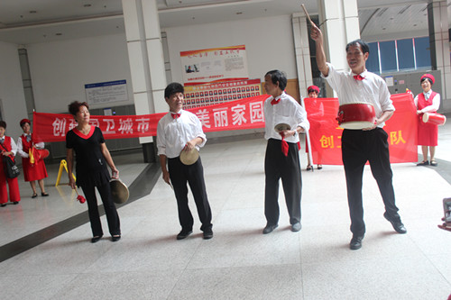 10月10日上午,蓮都區(qū)創(chuàng)衛(wèi)宣傳隊走進客運西站,在候車室用他們自己編排的創(chuàng)衛(wèi)節(jié)目向西站員工和過往旅客進行“創(chuàng)國衛(wèi)”的宣傳。 宣傳隊員認(rèn)真的表演,引來不少乘客駐足觀看。