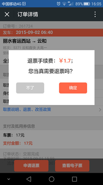 (6)微信還可以退票(手續(xù)費與窗口退票相同)
