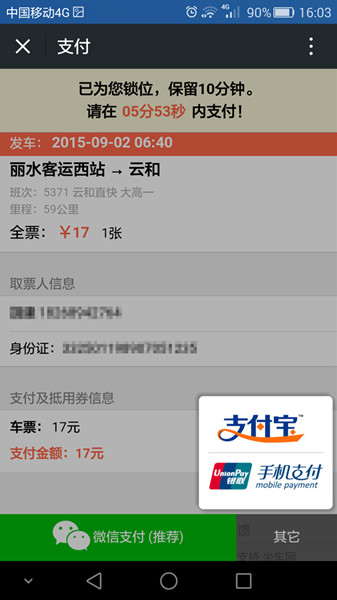 (5)旅客購票后最遲發(fā)車前10分鐘憑身份證或取票密碼到自助售票機取票。