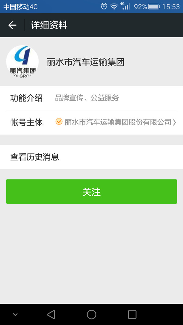 (1)打開微信,搜索添加“麗水市汽車運輸集團”微信公眾號或直接掃取二維碼,點擊關(guān)注。