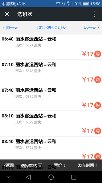 (3)點擊“購票”,進入購買服務(wù)頁面,在上車站位置選擇“麗水客運東站”或“麗水客運西站”。