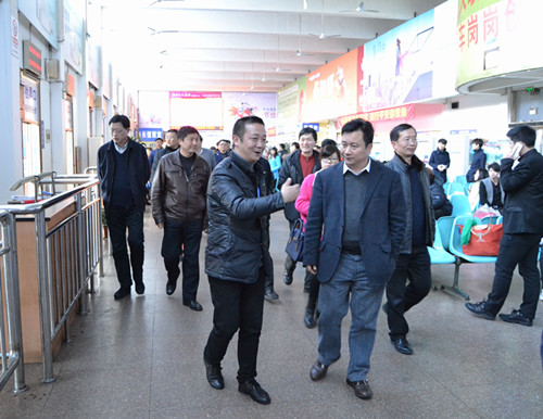 2月21日下午,麗水市市長(zhǎng)黃志平、副市長(zhǎng)葛學(xué)斌及市各有關(guān)單位領(lǐng)導(dǎo)在集團(tuán)公司總經(jīng)理薛和有、副總經(jīng)理廖翊堯和東站經(jīng)理梁巍的陪同下,視察了東站及周邊交通秩序和環(huán)境衛(wèi)生情況。