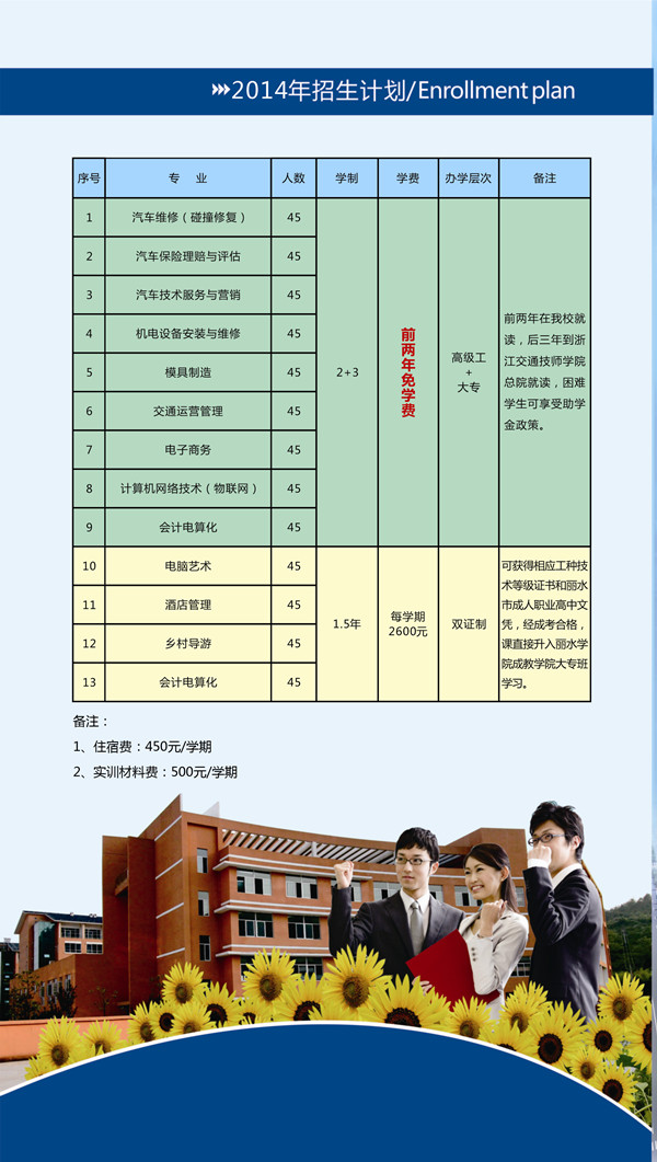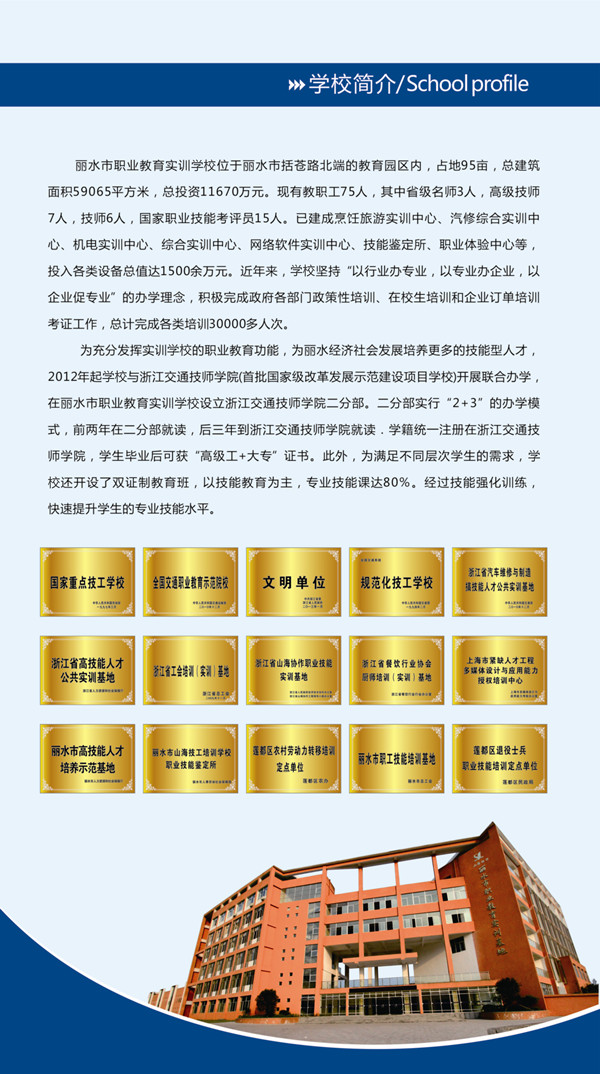 浙江交通技師學(xué)院二分部 麗水職業(yè)教育實訓(xùn)學(xué)校2014年招生簡章