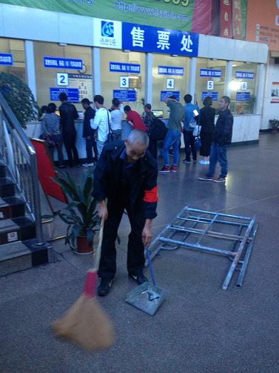 近段時(shí)期,客運(yùn)東站正如火如荼的進(jìn)行著創(chuàng)衛(wèi),各部門,各崗位都把創(chuàng)衛(wèi)當(dāng)作頭等大事來(lái)抓,不敢有一絲的懈怡。我們的老同志也不甘人后,他時(shí)常在工作的間隙出現(xiàn)在候車大廳,一會(huì)兒撿個(gè)雜物、一會(huì)兒夾個(gè)煙頭、一會(huì)兒耐心的勸導(dǎo)旅客不要亂扔垃圾??矗‘?dāng)他發(fā)現(xiàn)候車室值班室因裝修留下了一些白色粉塵,就趕忙拿起掃帚,將這些死角清理干凈。他的干勁一點(diǎn)也不輸給那些剛參加工作沒(méi)幾年的小年輕。當(dāng)我給他拍照時(shí)他還很不好意思的用背部躲閃著我的鏡頭。一邊還說(shuō)著:“不要拍我!你去拍那些做的更好的同志”!