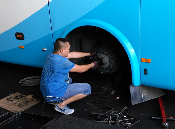 走進(jìn)車輛維修車間,一股熱浪迎面撲來(lái),耳邊傳來(lái)輪胎拆裝機(jī)的轟鳴聲,眼前我們可以看見(jiàn)手拿各種工具的維修工人們忙碌的身影。他們有的在拆輪胎,有的在焊接,有的在拆裝螺帽,有的在清洗設(shè)備…灼眼的閃光,飛濺的火星,淺藍(lán)的煙霧,稍微有點(diǎn)嗆鼻的氣味,或蹲或站,左手緊握著防護(hù)罩,右手使著電焊槍,豆大的汗水順著臉頰流下來(lái)。廣大一線員工不畏高溫一如既往地堅(jiān)守在各自崗位上,為企業(yè)的生產(chǎn)經(jīng)營(yíng)付出了艱辛的汗水,為事業(yè)貢獻(xiàn)了力量。師傅們,你們真的辛苦了!