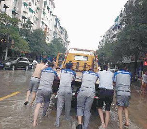一、與洪水周旋,在水中作戰(zhàn),積極搶救被淹車輛