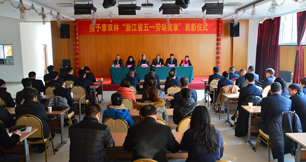 12月24日,授予章雙林“浙江省五一勞動(dòng)獎(jiǎng)?wù)隆北碚么髸?huì)在麗水舉行,麗水市總工會(huì)黨組書記、常務(wù)副主席陳子民、副主席葉云妹、柳愛麗、麗汽集團(tuán)董事長、黨委書記葉茂和章雙林本人出席大會(huì)。