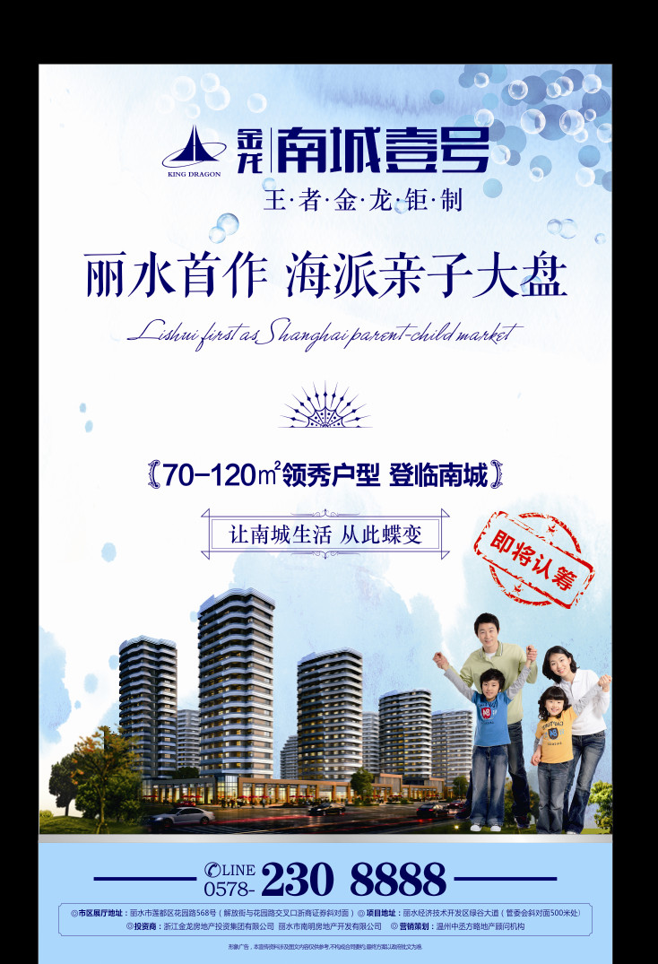 麗水首作海派親子大盤,金龍.南城壹號(hào)即將認(rèn)籌,70-120平方米領(lǐng)袖戶型,配備超200米特色商業(yè)內(nèi)街、近1000米環(huán)形跑道、超800平方米藍(lán)鉆泳池和8大親子主題,讓南城生活從此蝶變。
