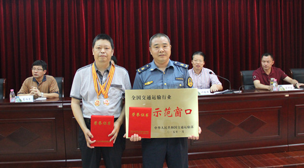 6月30日上午,市交通運(yùn)輸局召開會(huì)議,表彰“模范司機(jī)”吳斌榮獲全國(guó)交通運(yùn)輸系統(tǒng)勞動(dòng)模范、全國(guó)交通運(yùn)輸行業(yè)文明職工標(biāo)兵稱號(hào)。在全市交通運(yùn)輸系統(tǒng)年中安全生產(chǎn)會(huì)議開始前,市交通運(yùn)輸局黨組書記、局長(zhǎng)葉沙平親自為吳斌頒發(fā)了證書、獎(jiǎng)?wù)隆?huì)議還同時(shí)表彰了330國(guó)道麗水超限運(yùn)輸監(jiān)測(cè)站獲得全國(guó)交通運(yùn)輸行業(yè)文明示范窗口稱號(hào)。