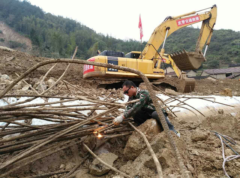 修理工陳健和葉仕林組裝好氣割設(shè)備后,將鋼筋切隔分段,金旭陽和吳天軍兩人則和現(xiàn)場的消防、武警戰(zhàn)士一起將切割好的鋼筋搬離現(xiàn)場。在搬鋼筋的過程中,他們的腳陷入了泥潭,手被鋼筋磨出了水泡,汗水濕透了衣服,但誰也沒有吱一聲。經(jīng)過眾人馬不停蹄的3個(gè)多小時(shí)的努力,被掩埋的二十多噸鋼筋全部按要求搬離。