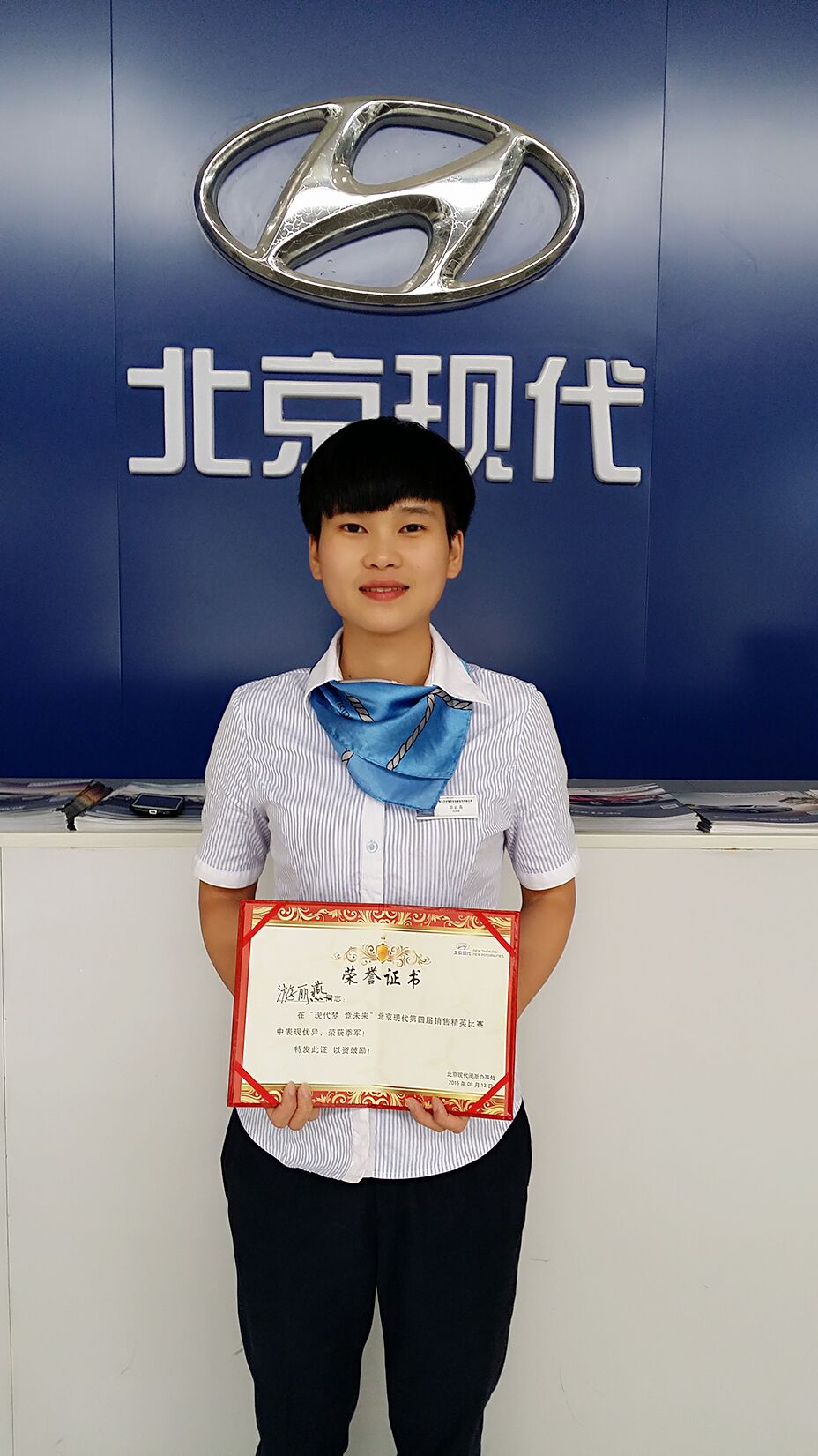 2015年,游麗燕代表伊翔店參加閩浙區(qū)銷售比武大賽,她有憑借自己熟練的銷售知識,過五關斬六將,在眾多銷售顧問中脫穎而出,榮獲了“閩浙區(qū)銷售比武大賽季軍”的稱號。