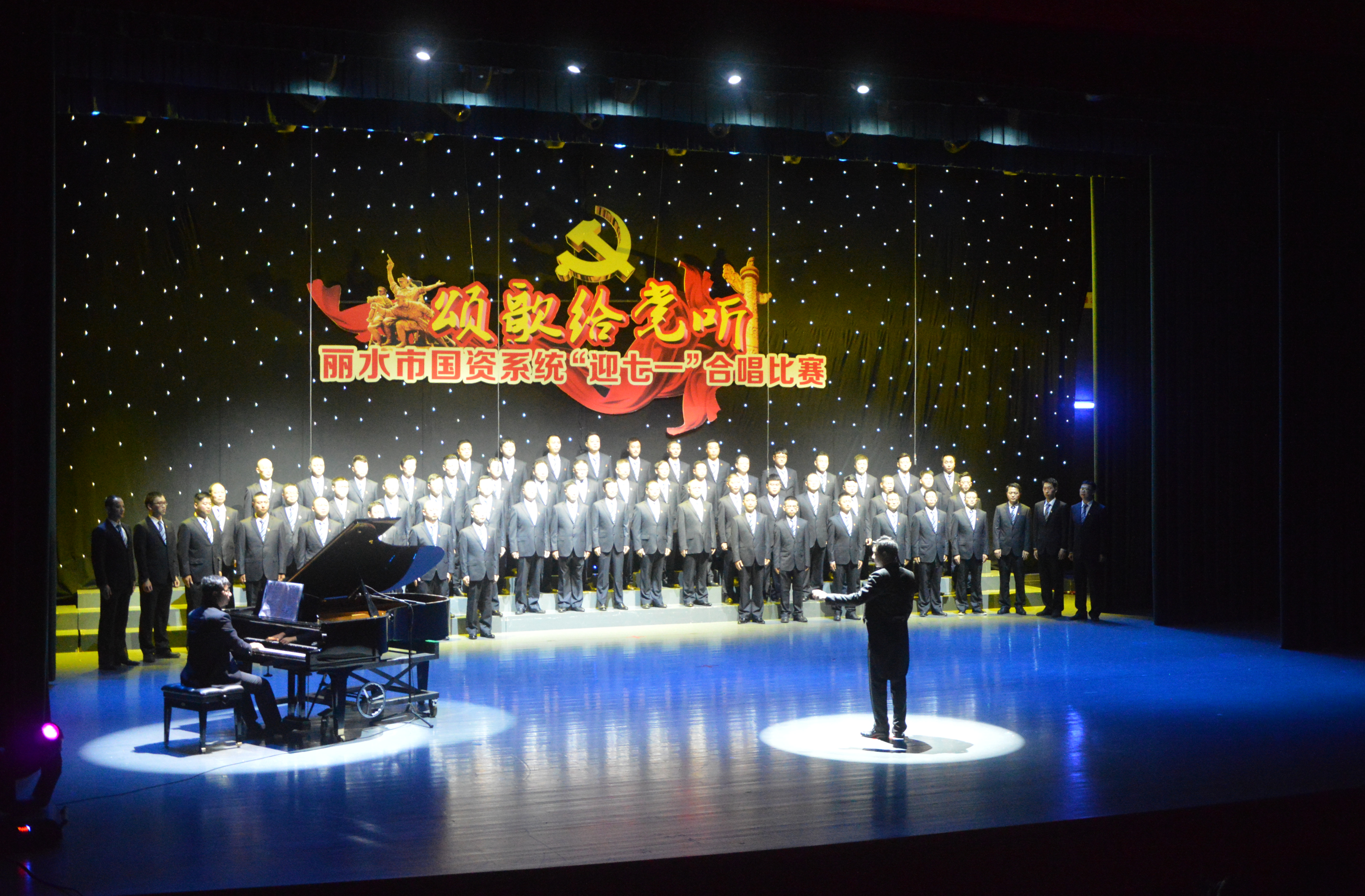 “在我們麗水有著一家80多年歷史的道路運(yùn)輸企業(yè),她從一條羊腸小道、兩部舊車?yán)_(kāi)了我們秀山麗水的公路運(yùn)輸發(fā)展序幕,歷經(jīng)抗日戰(zhàn)爭(zhēng),解放戰(zhàn)爭(zhēng)到改革開(kāi)放的洗禮,她一路風(fēng)雨兼程,現(xiàn)如今,她成為了一個(gè)擁有旅游文化、汽車服務(wù)、道路運(yùn)輸、房地產(chǎn)四大產(chǎn)業(yè)板塊并趨的集團(tuán)企業(yè),從無(wú)到有,由弱到強(qiáng)。她始終在綠水青山就是金山銀山的幸福麗水大建設(shè)的康莊大道上拼搏創(chuàng)新,一路前行不息?!?br /> 6月29日晚的蓮城劇場(chǎng)里,麗水市國(guó)資系統(tǒng)組織了一場(chǎng)主題為“頌歌給黨聽(tīng)”的“迎七一”合唱比賽,在主持人的介紹后,麗汽集團(tuán)合唱團(tuán)以一曲激情高亢的《天路》征服了所有在場(chǎng)觀眾。演員們身著司服上場(chǎng),胸佩黨徽,個(gè)個(gè)精神飽滿。三個(gè)聲部韻律清晰,天籟般的嗓音、蕩氣回腸的演唱,仿佛讓大家置身于壯闊的雪域高原,博得了評(píng)委及現(xiàn)場(chǎng)觀眾的陣陣掌聲。
