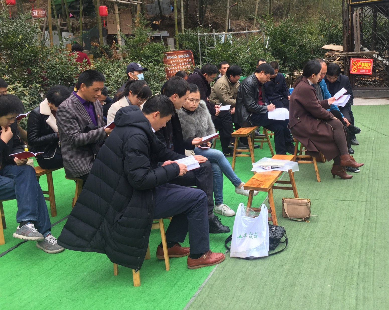 本次活動在露天的場地中進(jìn)行,長板凳排排坐,倒是有一番重溫老一輩革命黨員因條件有限只能在室外開展學(xué)習(xí)的場景。首先,支部書記王旭帶領(lǐng)黨員們重溫入黨誓詞。本次大會主要意在組織支部黨員開展民主評議、黨員先鋒指數(shù)考評。大會還增補(bǔ)了呂勇平同志為支部委員。