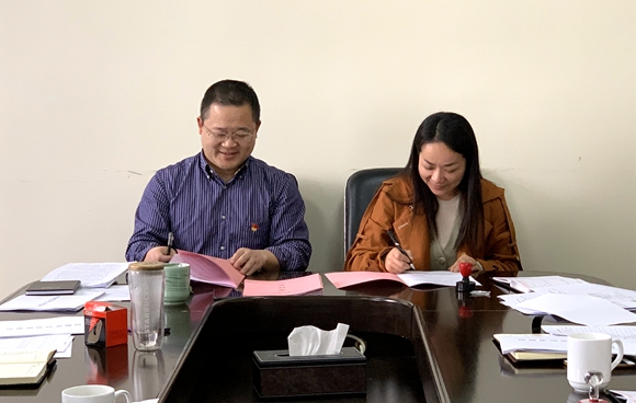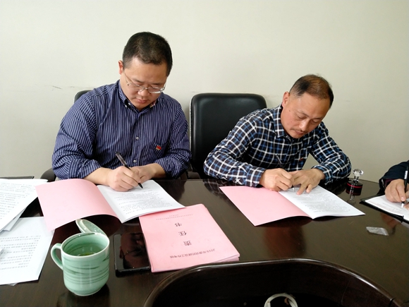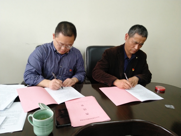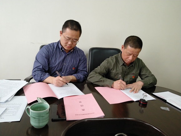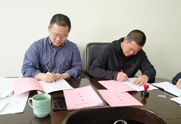 圖為集團公司黨委與黨辦及各黨支部簽訂《黨的建設(shè)工作考核責任書》
