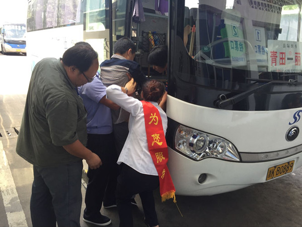 坐“輪椅”的旅客是青田人,因患嚴(yán)重中風(fēng)妻子陪同到麗水就醫(yī),看完病后乘三輪車到汽車東站準(zhǔn)備回青田。因無法獨自行走正和手提大包、小包行李的妻子在汽車東站門口發(fā)愁。恰好被巡查場地的副經(jīng)理戴宏星和保衛(wèi)科的熊宣標(biāo)看見了,他們趕緊上前,一左一右攙扶起旅客,可是旅客根本不能行走,他倆使勁全力幾乎是半抬的把旅客扶到服務(wù)臺。從售票廳到檢票口短短的五十米路,足足用了十來分鐘。