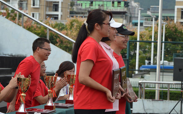下午15:50,閉幕式開始。本屆運(yùn)動(dòng)會(huì)裁判長(zhǎng)、麗水職業(yè)技術(shù)學(xué)院人文藝體分院梁勇建老師首先宣布了團(tuán)體項(xiàng)目比賽成績(jī)和各獎(jiǎng)項(xiàng)的獲得單位,(個(gè)人項(xiàng)目的獎(jiǎng)項(xiàng)在各項(xiàng)比賽完畢后已經(jīng)陸續(xù)發(fā)放完畢。)并舉行了頒獎(jiǎng)儀式。