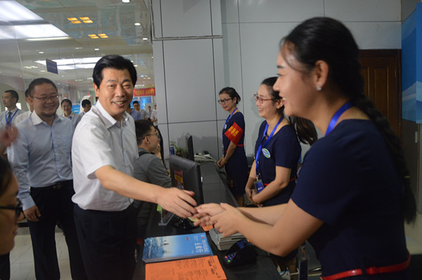 廖國勛與旅游集散中心一線員工一一握手