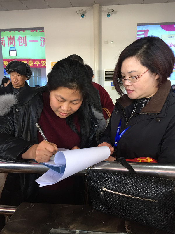 目前東站每天發(fā)送將近6000名旅客,這些服務(wù)工作全部由“流動之家”服務(wù)班的14位姐妹花承擔(dān)。2016年12月,為了滿足兄弟單位的人員需求,本來人手嚴(yán)重不足的服務(wù)班,兩名組員被調(diào)到了新單位。到了2017年的1月,眼看春運(yùn)即將開始,又有兩名同事相繼辭職。由于事發(fā)突然,站里也不可能馬上配足人員。人手緊缺,對做好春運(yùn)服務(wù)工作是一大考驗(yàn)。面對困難,“流動之家”服務(wù)班的姐妹們沒有氣餒,更沒有抱怨?!按蠹壹影褎牛劝汛哼\(yùn)挺過去再說,再累也一定要讓旅客先順利回家”,這是服務(wù)班姐妹們在春運(yùn)期間最樸實(shí)的想法。最后,通過大家的相互協(xié)作,通過調(diào)整崗位配置,甚至放棄部分休息天等措施,硬是咬緊牙關(guān)堅(jiān)持了下來。在沒有請外援的情況下,使得高鐵配載點(diǎn)和東站服務(wù)臺的工作有條不紊地進(jìn)行,圓滿完成了春運(yùn)工作。