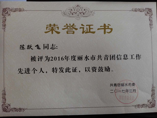 3月9日,共青團(tuán)麗水市第四屆委員會(huì)第二次全體會(huì)議在市行政中心108會(huì)議室順利召開(kāi)。會(huì)上,集團(tuán)公司團(tuán)委被授予“麗水市共青團(tuán)工作目標(biāo)考核優(yōu)秀單位”,同時(shí)鑒于陳躍飛同志在共青團(tuán)信息工作方面的突出表現(xiàn),被團(tuán)市委評(píng)為“2016年度麗水市共青團(tuán)信息工作先進(jìn)個(gè)人”。