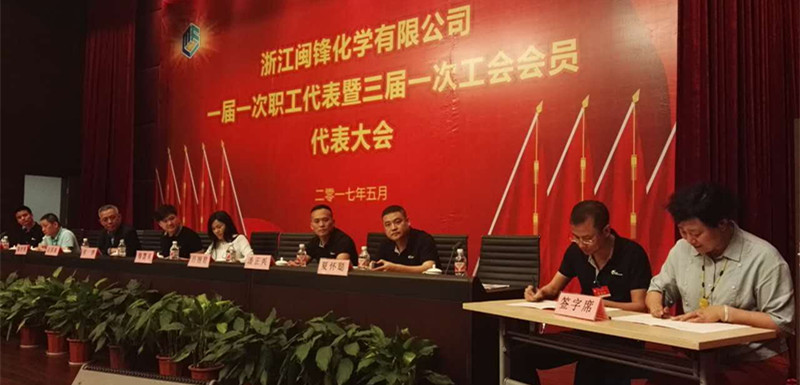 5月2日下午,麗汽集團(tuán)工會與浙江閩鋒化學(xué)有限公司工會“友好共建協(xié)議”簽訂儀式在閩鋒化學(xué)有限公司職代會上隆重舉行,閩鋒化學(xué)有限公司一百余名職工代表共同見證了簽約儀式。