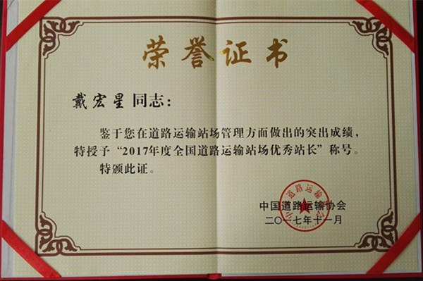 在中國道路運(yùn)輸協(xié)會、中國海員建設(shè)工會全國委員會舉辦的 “2017年度全國道路運(yùn)輸安全行車百萬公里駕駛員勞動競賽活動”中,長運(yùn)分公司陳麗義獲全國優(yōu)秀駕駛員;客運(yùn)東站戴宏星獲全國優(yōu)秀站場長。