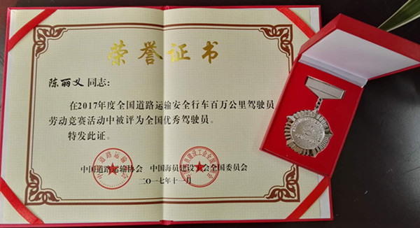 2017年11月,在中國道路運(yùn)輸協(xié)會、中國海員建設(shè)工會全國委員會舉辦的 “2017年度全國道路運(yùn)輸安全行車百萬公里駕駛員勞動競賽活動”中,陳麗義獲全國優(yōu)秀駕駛員。面對榮譽(yù)他憨笑著說:“我只是做好自己的本責(zé)工作而已?!?br/> 突然間明白,其實所有的先進(jìn),都是我們身邊的平凡人。 對于從事客運(yùn)服務(wù)的我們,每天認(rèn)真地把本職工作做好,多遞一杯水,多一聲問候,危難時刻伸手幫一把。把自己的事情做好,把自身的責(zé)任盡到,當(dāng)這一切到達(dá)極致的時候,便成了楷模。