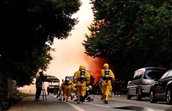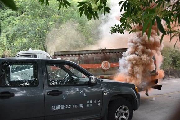 這是在2018年度麗水市道路運輸突發(fā)事件應(yīng)急處置演練現(xiàn)場發(fā)生的“驚險”一幕。