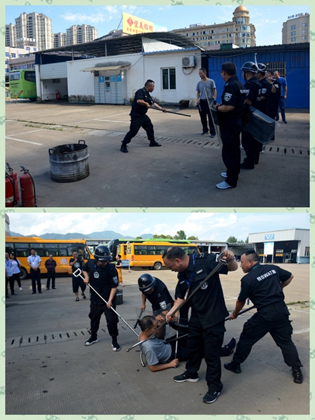 場景一:長運(東站)保衛(wèi)稽查科徐紅平講解反恐防暴基本常識,突發(fā)事件應(yīng)對方法以及自我保護等方面知識。反恐安保演練馬上上演:在長運(東站)場地內(nèi),乘客正有序候車,突然,一名持刀男子開始追砍乘客,并在人群中點燃易燃物品。此時,汽車站安保人員立即出動,手持盾牌、制服器、防暴叉等與“暴徒”展開搏斗,迅速將“暴徒”控制。短短數(shù)分鐘,一起突發(fā)暴力事件被成功處置。