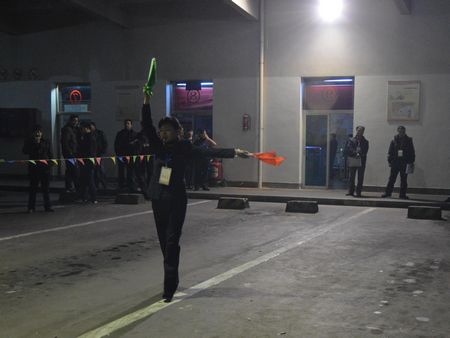 12月4-5日晚上,集團(tuán)公司從業(yè)人員崗位技能比武--行車操作比賽在客運(yùn)東站場地內(nèi)舉行。東、西兩站各有5名選手參加。比賽要求選手在規(guī)定時(shí)間內(nèi)檢票20張并檢出錯票,旗笛指揮要求動作規(guī)范、指令清晰準(zhǔn)確,整個行車操作過程必須言行舉止文明、微笑自然。