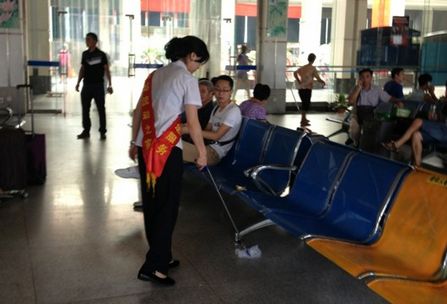 創(chuàng)衛(wèi)工作是當(dāng)前西站各項工作中的重中之重,客運西站實行全站員工總動員,要求每位員工做到視線內(nèi)我就是保潔員,在確保完成本職工作的同時,全力以赴打好這場創(chuàng)衛(wèi)攻堅戰(zhàn),實行“客運工作與創(chuàng)衛(wèi)工作兩手抓,兩手都要硬?!?br/> 踏進站前廣場,你會看見保潔員拿著掃把、簸箕不停的巡視,及時的清理;買票時,你會時不時看見保衛(wèi)稽查人員拿著長柄鑷子在清理;候車時,推著服務(wù)車的西站服務(wù)班工作人員在為旅客提供服務(wù)的同時也拿著長柄鑷子清理地上的垃圾;上車時,你還會在發(fā)車區(qū)看見檢票員跟調(diào)度員在發(fā)車間隙拿著長柄鑷子及時清理正在上車的旅客丟下的垃圾。不遠處的場地上,是拿著鑷子和垃圾袋的值班站長的身影。