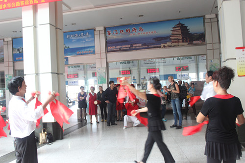 10月10日上午,蓮都區(qū)創(chuàng)衛(wèi)宣傳隊走進客運西站,在候車室用他們自己編排的創(chuàng)衛(wèi)節(jié)目向西站員工和過往旅客進行“創(chuàng)國衛(wèi)”的宣傳。 宣傳隊員認(rèn)真的表演,引來不少乘客駐足觀看。